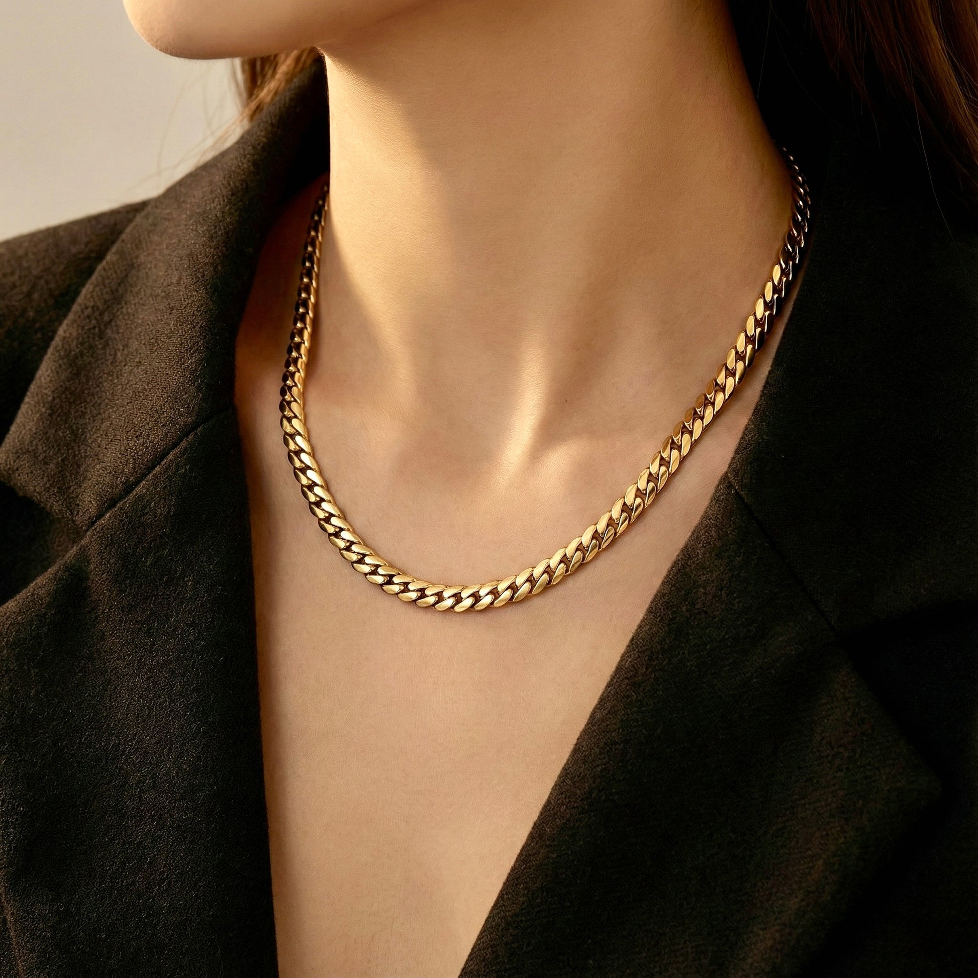 Classic high-shine links finished in radiant 18K gold plating. Bold yet refined, this versatile statement chain elevates everything from blazers to sarees with effortless impact.
